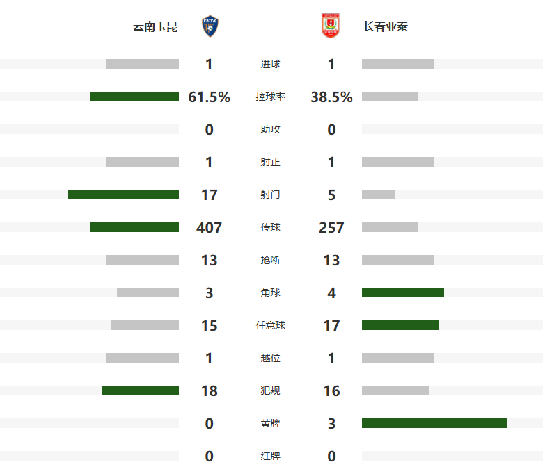 2025-08-31 01:30北京时间8月30日20点,中超第23轮,云南玉昆主场1-1战平长春亚泰。张华晨上半场任意球破门,约尼查第84分钟任意球中柱,奥斯卡第99分钟点球绝平。亚泰3场拿到7分,但积16分继续垫底。