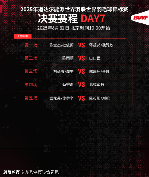羽毛球世锦赛决赛赛程出炉:石宇奇陈雨菲领衔 中国队冲击五单项金牌