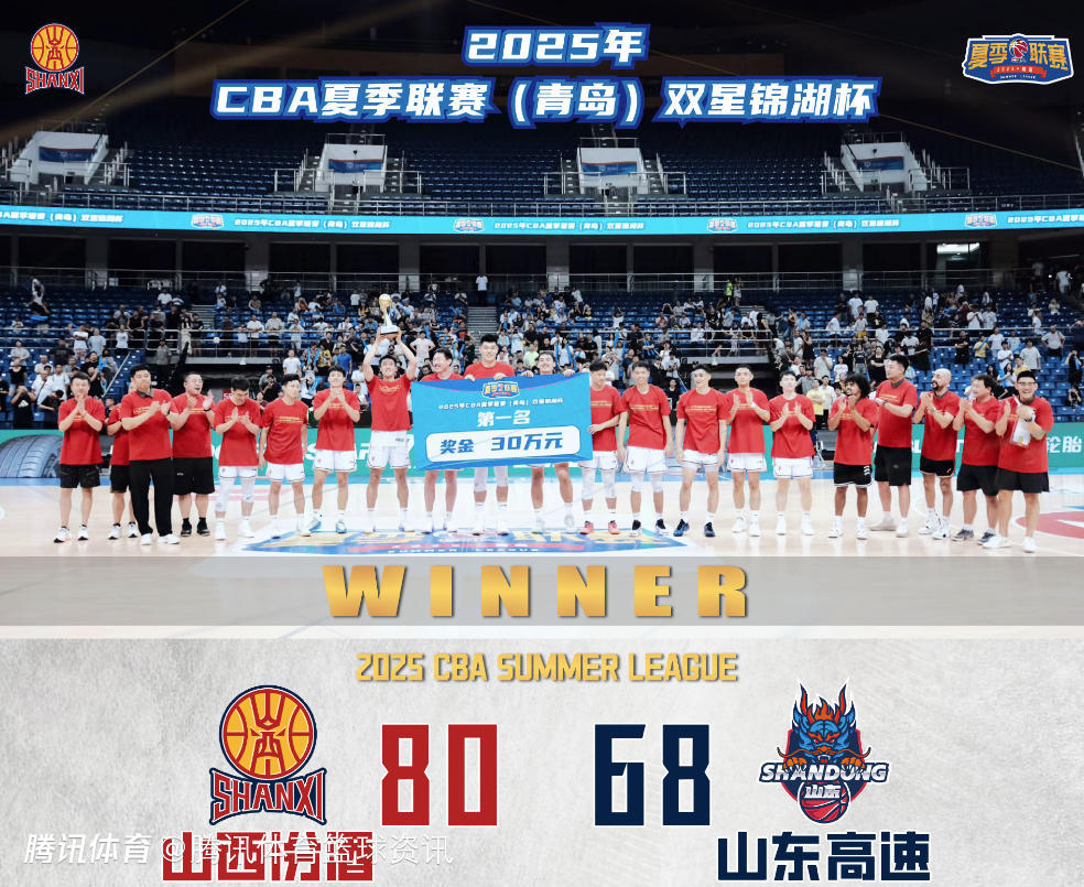 山西男篮在官方微博上写道:“CBA夏季联赛(青岛)“双星锦湖杯”于8月30日圆满落幕,山西汾酒在决赛中80:68战胜山东高速,最终以五战全胜的战绩结束本次夏季联赛征程。
