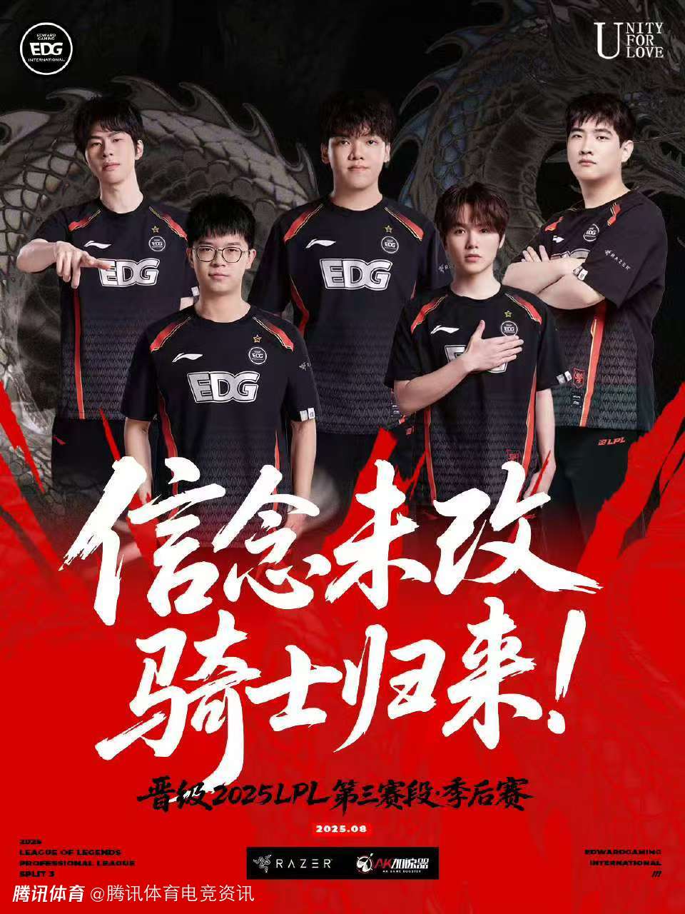2025-08-31 21:308月31日,LPL第三赛段骑士之路EDG以3比1击败WE晋级季后赛八强,赛后EDG俱乐部官方社媒发文送上了祝贺。