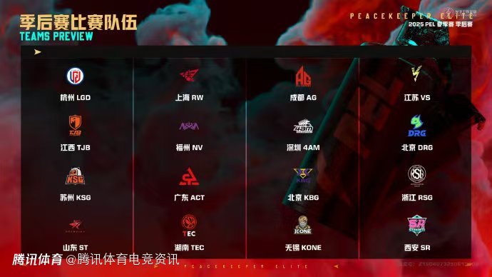 PEL和平精英职业联赛官方:”9月4日18点,2025PEL夏季赛季后赛将在以下十六支队伍中开打!物竞天择,野性觉醒,让我们共同期待总决赛队伍的诞生!“