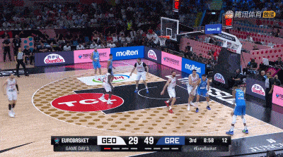 次节比赛,科尔桑蒂亚两罚全中,金查拉泽跳投得手。希腊队萨莫杜罗夫跳投命中,卡马尔鲍德温为格鲁吉亚队命中三分,希腊队米托格鲁先是投篮命中,然后两罚全中。科尔桑蒂亚投篮得手,斯洛卡斯两罚全中,字母哥四罚中三,米托格鲁命中三分拉开到14分领先。格鲁吉亚队萨纳泽命中三分,字母哥连续跳投得手,希腊队46-29领先格鲁吉亚队结束上半场比赛。