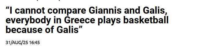 正如斯潘诺里斯所说:“我无法对两人进行对比。在希腊,几乎所有人都是因为加利斯以及那支伟大的球队才开始打篮球的——加利斯、扬纳基斯、法索拉斯、克里斯托杜洛,还有其他所有队友。现在是全新的一代了:在他们之后,我们这一代球员登场,五年内赢得了三枚奖牌;而现在,我们正努力打造新一代的希腊篮球。”