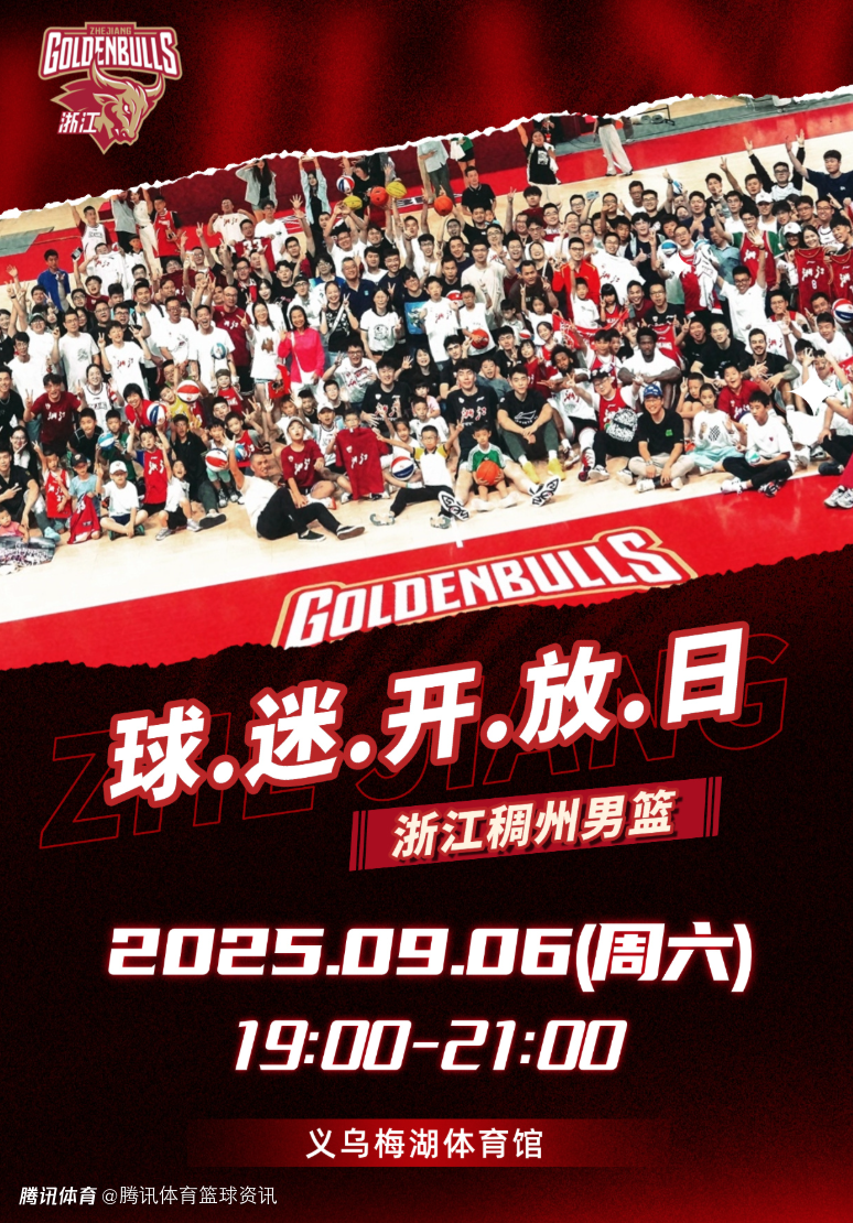 2025-2026赛季CBA联赛浙江稠州金租男篮主场回到义乌,为了响应广大球迷朋友们对浙江稠州金租男篮的喜爱与支持、增进球迷朋友们与浙江稠州金租男篮之间的交流互动,俱乐部正式敲定浙江稠州金租男篮球迷开放日日程!