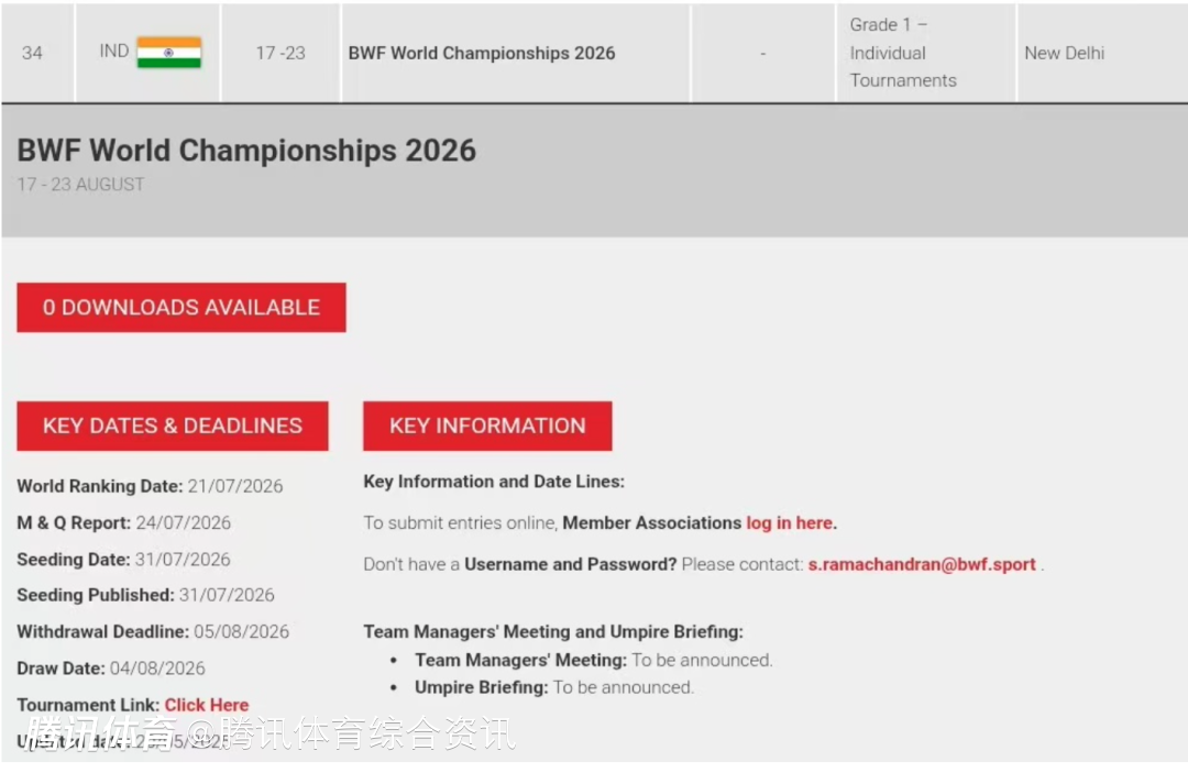 -作为补偿,印度转而获得2026年世界羽毛球锦标赛的主办资格。