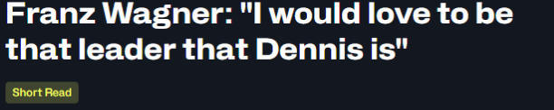 施罗德也给予了小瓦格纳盛赞,他表示:“瓦格纳非常出色,自从他加入球队,我们就不断取得好成绩。无论是人品性格,还是在球场上的表现,他都贡献良多。他在场上的能力很独特,既能传球又能投篮。而且他有6英尺9英寸的身高,这样的球员真的很特别。他是个天生的赢家,每场比赛我都愿意和他并肩作战,也会确保他能保持最佳状态。毫无疑问,他是德国国家队的未来。但与此同时,我们队里还有很多优秀的球员也能承担领袖职责,我们是一个整体,所有人都在为共同的目标努力。”