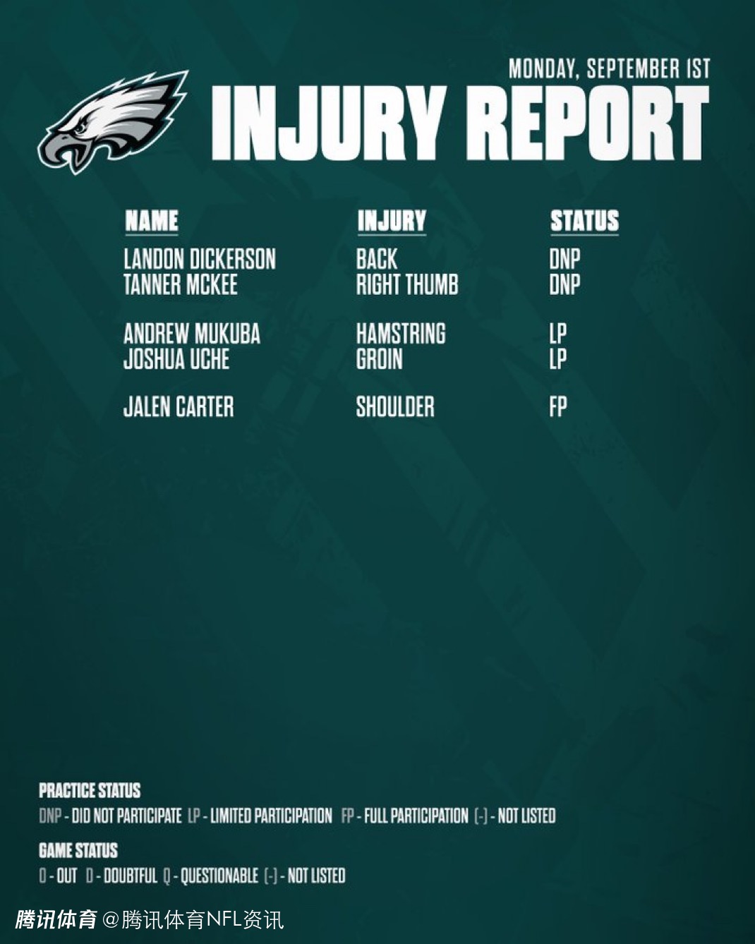 【NFL动态】费城老鹰备战揭幕战 伤病与阵容调整引关注