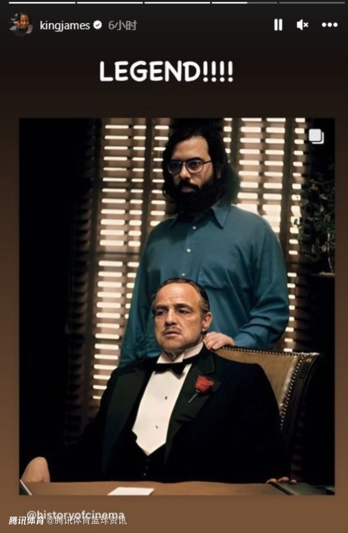 早在22年开赛的媒体日,詹姆斯就在接受采访时表示自己最爱的电影是《教父》第一部和第二部,而在23年4月份,他又在社媒晒出电影《教父》中导演科波拉和主演马龙-白兰度的剧照,并且配文:“传奇!!!”今年东契奇被交易至湖人,詹姆斯又给这位新队友取了一个绰号“Don”,而这个绰号灵感来源就是电影《教父》。