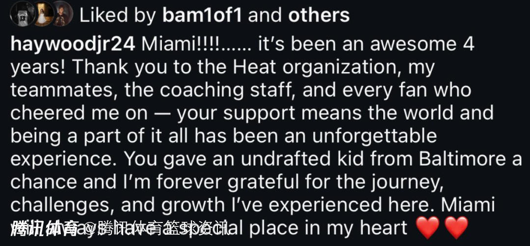 2025-09-02 11:00北京时间9月2日,篮网队球员海史密斯发文,向前东家热火队告别。