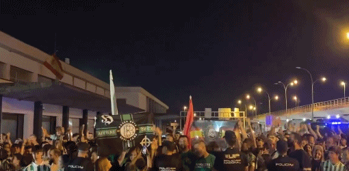 贝蒂斯球迷打着节拍唱着歌,呼喊安东尼的名字,举着旗帜、安东尼的球衣,气氛非常热烈。机场通道路口堵得水泄不通,当地不得不出动警察、安保人员维持秩序。