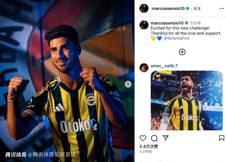 阿森西奥随后通过个人社交媒体发布了身穿费内巴切球衣的照片,并写道:“很高兴迎来这次全新的挑战!感谢你们的爱与支持。@费内巴切”。
