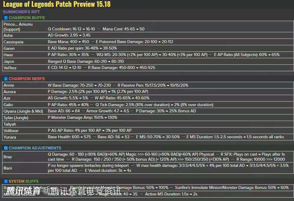 2025-09-03 17:009月3日,LOL官方发布25.18版本改动内容,具体改动如下:
