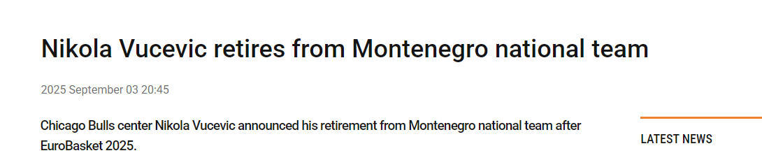 武切维奇从国家队退役:很荣幸能为黑山打球 感谢队友教练和球迷支持