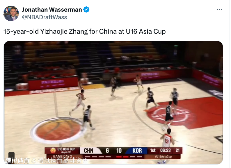 2025-09-03 23:00北京时间9月3日,U16男篮亚洲杯如火如荼的进行中,中国男篮三战全胜,以小组第一的身份晋级八强。国青小将张懿赵杰的出色发挥,也引起了BR知名选秀专家Jonathan Wasserman的关注。