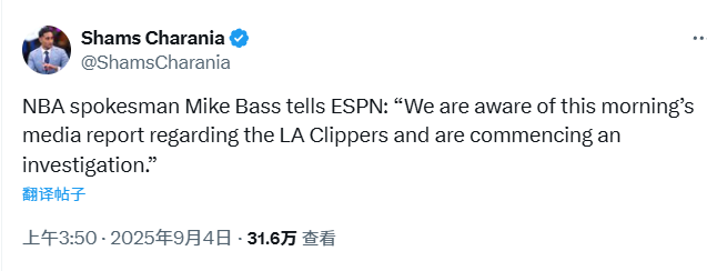 2025-09-04 04:50北京时间9月4日,据ESPN名记Shams报道,NBA发言人迈克-巴斯向其表示,联盟“已知晓有关洛杉矶快船队的媒体报道,并已启动调查”。据此前报道,快船队及其老板鲍尔默被指控通过向莱昂纳德支付2800万美元“挂名工作”报酬,以此规避NBA的工资帽规定。