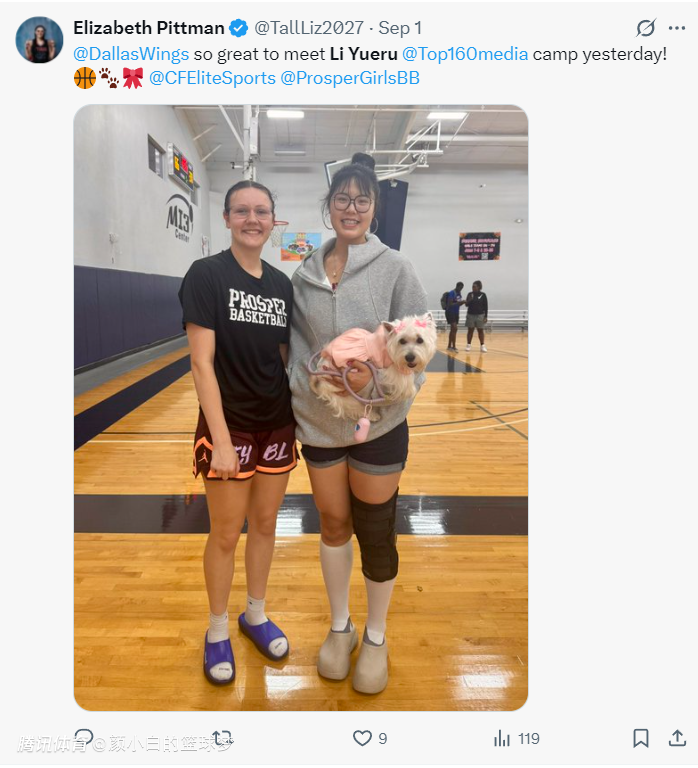 9月1日是李月汝近期唯一一次出现在公众面前,李月汝参与了Top160media举行的小型训练营,效力于Prosper Women’s Basketball的伊丽莎白-皮特曼主动来找到李月汝合影,皮特曼今年只有16岁,她此前参与了U16联赛发挥不俗,16岁的她已经1.93米。