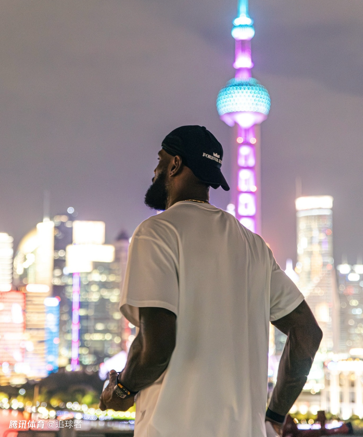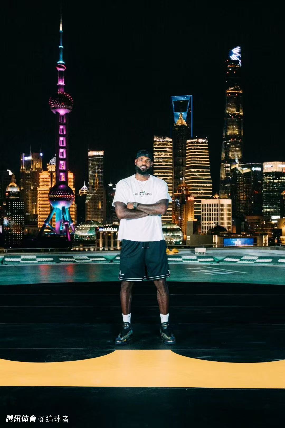 詹姆斯中国行:打卡外滩与东方明珠合影 上海站现场竖起皇冠logo