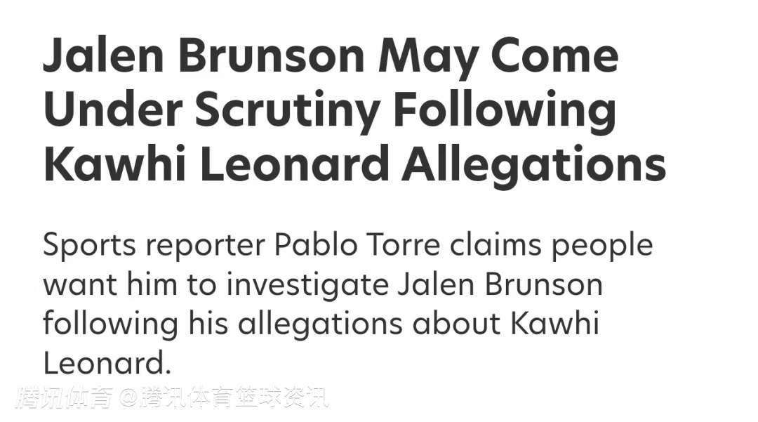 当Dan Patrick问及是否会调查布伦森与尼克斯队的交易时,Pablo Torre回应:“是这样,关于布伦森如何加盟尼克斯,我或许会就此展开报道,也可能不会。这件事本身确实很有意思,从表面看,这对尼克斯是一笔相当划算的交易,但我不想过早下结论,这算是小小的悬念吧。” 托雷的初步报道显示,莱昂纳德与该公司签署的代言协议金额达2800万美元,但其唯一目的就是规避工资帽,莱昂纳德无需实际履行任何代言义务。