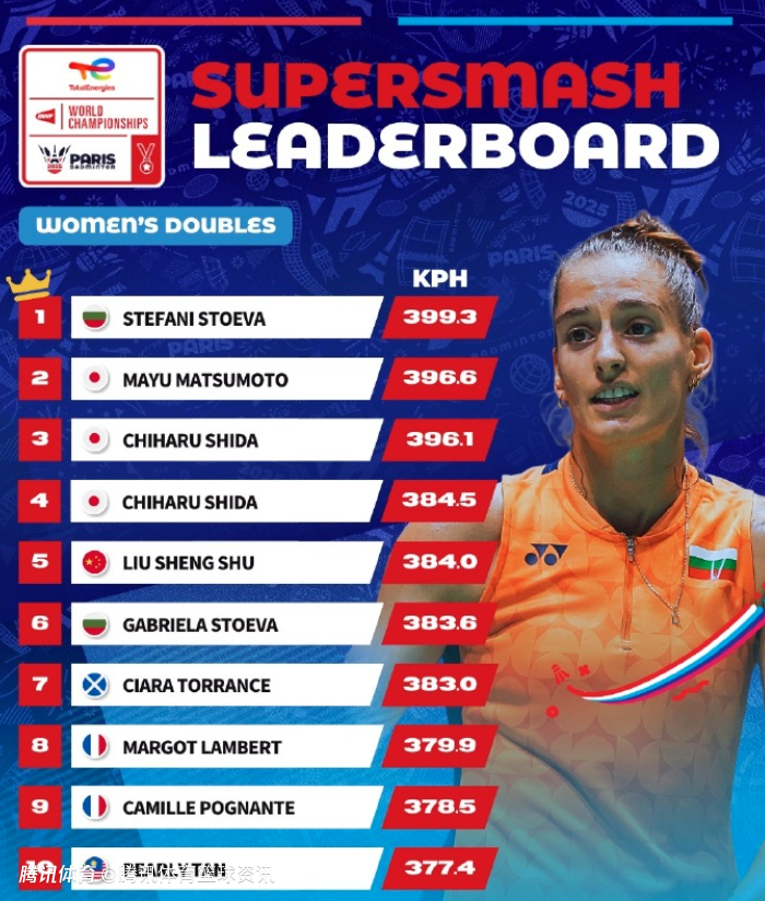 2025-09-04 12:00北京时间9月4日,BWF世界羽联公布了2025年羽毛球世锦赛球速排行榜。