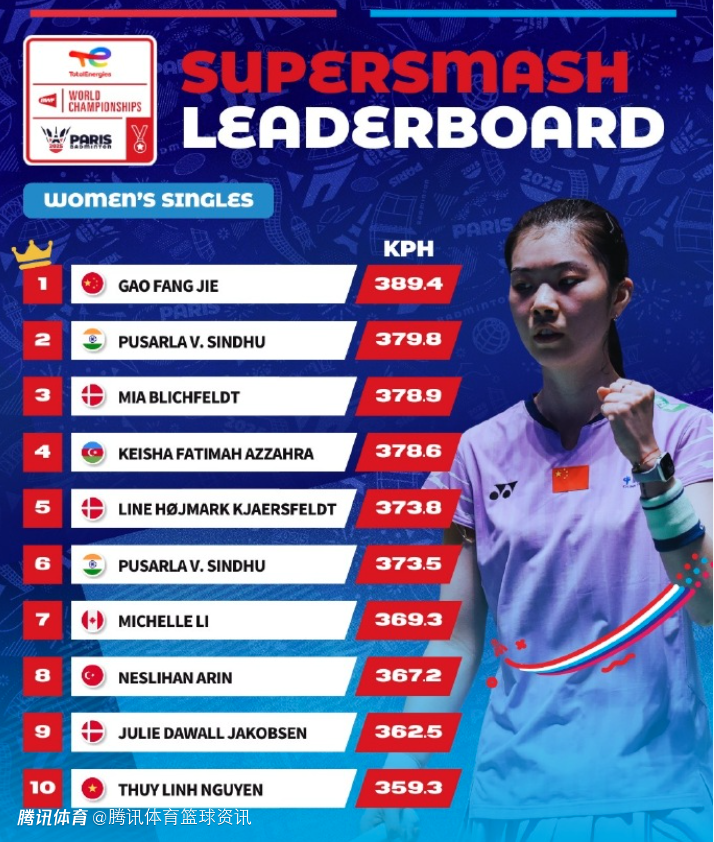 2025羽毛球世锦赛球速排行榜:高昉洁389.4领跑女单 陆光祖453.4为男单第七
