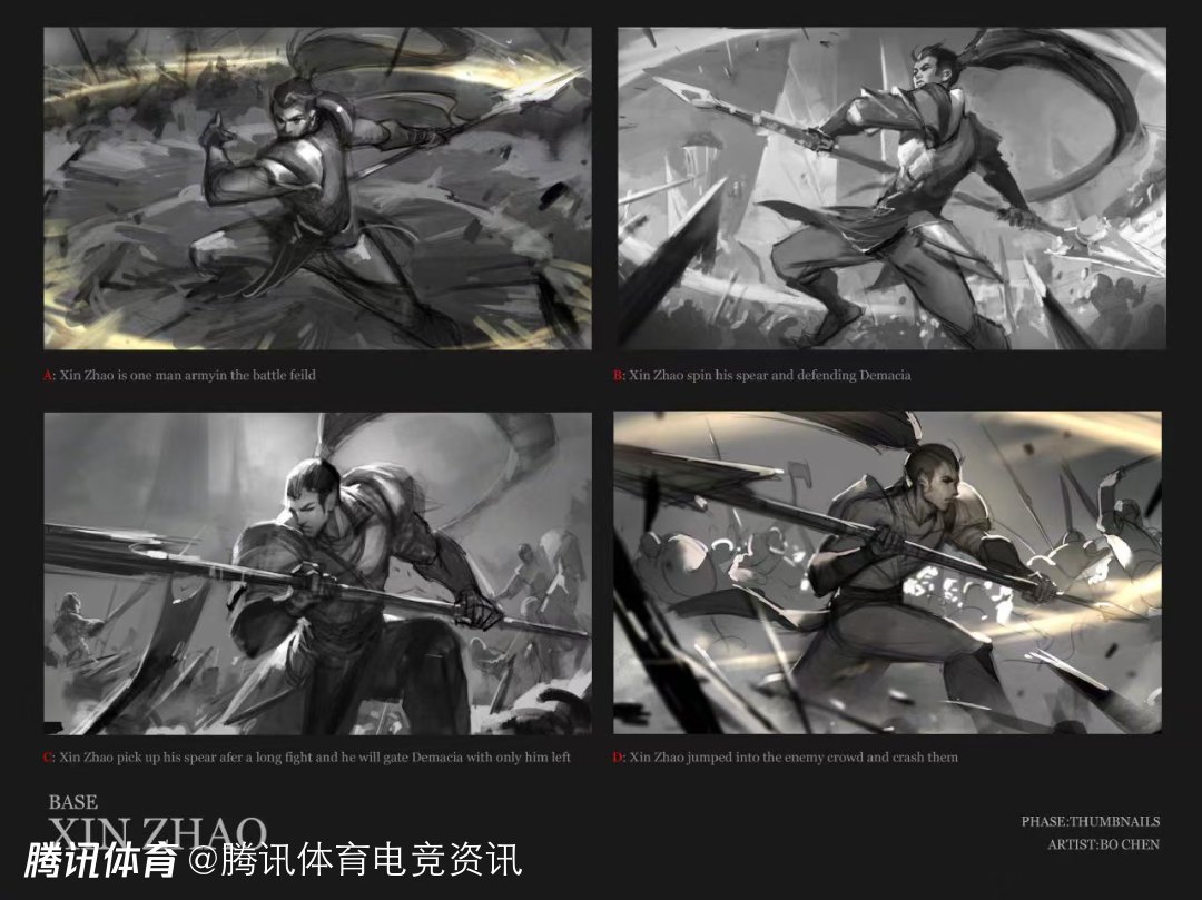 9月4日,英雄联盟官方更新了拳头游戏首席插画师更新赵信绘制过程,包括全新原图,设计方案。