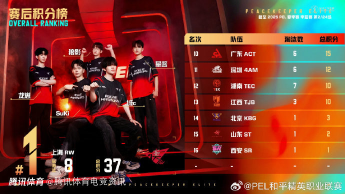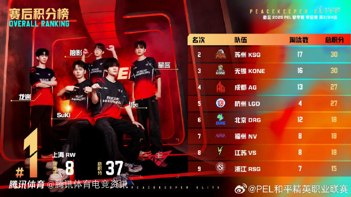 截至本场总积分榜第—名:RW