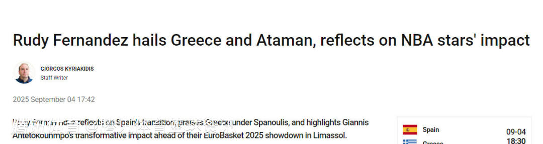 2025-09-04 20:40北京时间9月4日,西班牙男篮名宿鲁迪-费尔南德斯接受媒体采访,谈到了自己对于欧洲杯比赛的看法,费尔南德斯点赞了希腊队和土耳其队的表现,也指出想要夺冠需要依靠团队合作。