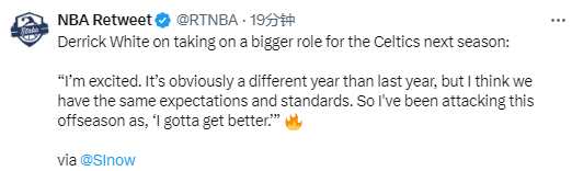 怀特说道:“我很兴奋。很显然,下赛季与上赛季情况不同,但我认为我们球队的预期和标准始终没变。所以这个休赛期,我一直抱着必须让自己变得更强的心态在全力投入。”