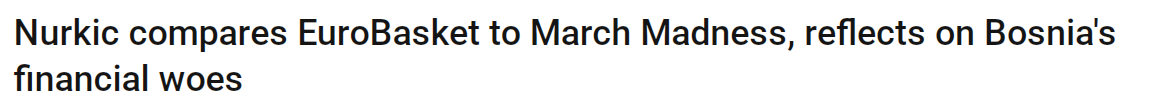 记者问他是否会将欧洲杯与NBA季后赛对比,他给出了否定的答案。“完全不同,因为欧锦赛是单场淘汰制。对我来说,它更像疯狂三月的淘汰赛阶段,而不是NBA的系列赛。” 努尔基奇还称赞了国际篮联今年提升了赛事组织水平。“对我来说,上一届欧洲杯的组织工作要差得多。本届欧洲杯做得非常好,FIBA的工作人员这次干得很棒。” 当被问及波黑队在里加的第二阶段比赛中能有怎样的表现时,努尔基奇回答:“我认为,是战斗。你们会看到的,就像今天这样,即便身处绝境,我们也必须全力以赴。你们会看到,这支球队会为了赢下比赛拼尽全力。” 【关注我!了解最新最靠谱的篮球资讯动态】