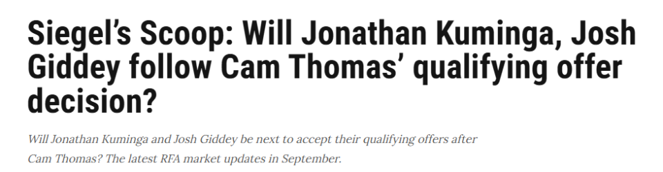 尽管公牛原本期望此时已达成协议,但他们仍有信心吉迪不会重蹈库明加与托马斯的覆辙(即接受资质报价)。