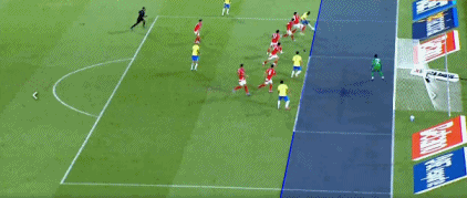 第5分钟,巴西队获得前场任意球机会,拉菲尼亚操刀将球送入禁区,卡塞米罗头球攻门得手,但因越位在先进球无效。