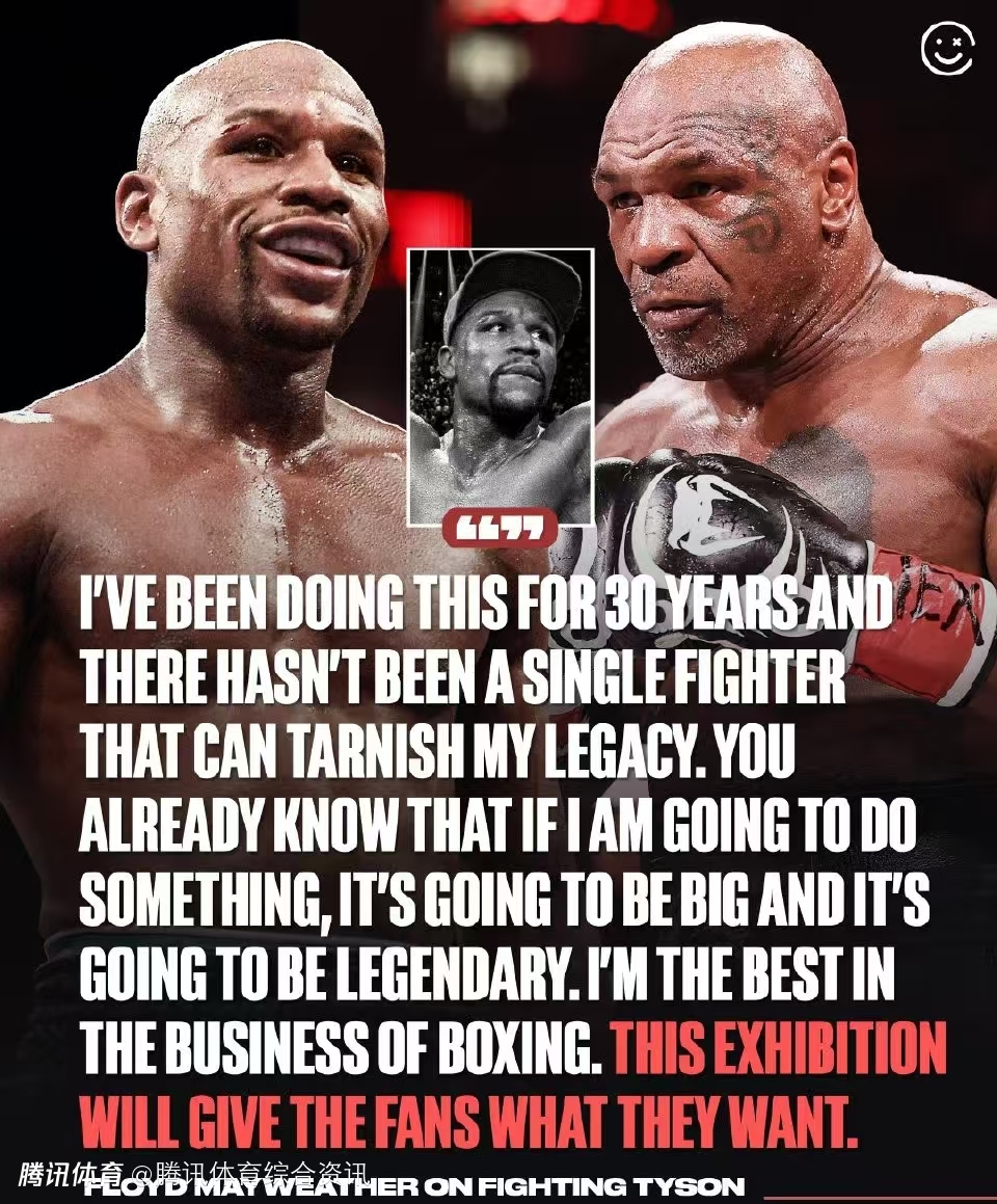 泰森上一场比赛是对战网红杰克-保罗(表演赛),其最后一场职业赛事距今已20年(2005年退役)。梅威瑟上一场职业比赛是8年前对战康纳-麦格雷戈,近年频繁参加表演赛(包括对战罗根-保罗)。