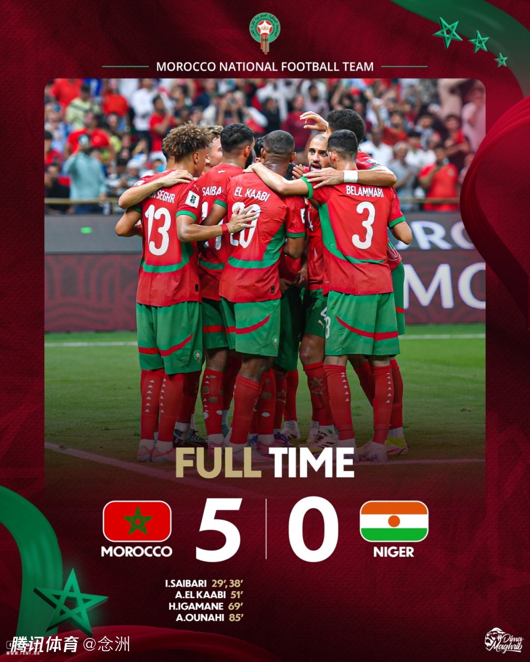 世预赛非洲区,摩洛哥5-0横扫尼日尔,成为首支晋级美加墨世界杯的非洲球队。世界杯已定17席:美国、墨西哥、加拿大、日本、新西兰、伊朗、阿根廷、乌兹别克斯坦、韩国、约旦、澳大利亚、巴西、厄瓜多尔、乌拉圭、巴拉圭、哥伦比亚、摩洛哥。