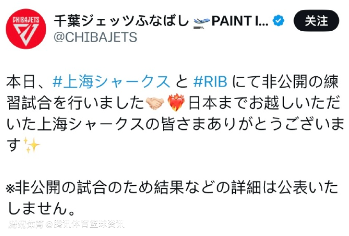 媒体人:上海与千叶喷射机进行封闭教学赛 渡边雄太、区俊炫出镜