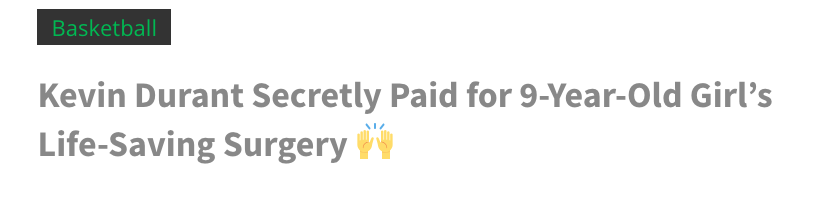 爱心满满!杜兰特秘密为9岁女童支付脑瘤手术费