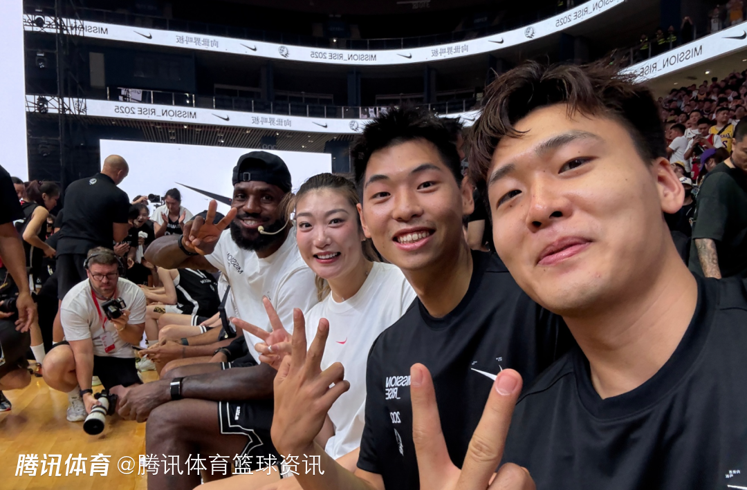 昨日,赵睿和詹姆斯一同出席了在水井坊篮球馆的相关活动,两人担任导师,指导中国国青队的队员,而在昨日晚间耐克“打出名堂”活动时,赵睿、崔永熙、李梦三人也坐在场边,和一旁的詹姆斯进行了互动,一同自拍。