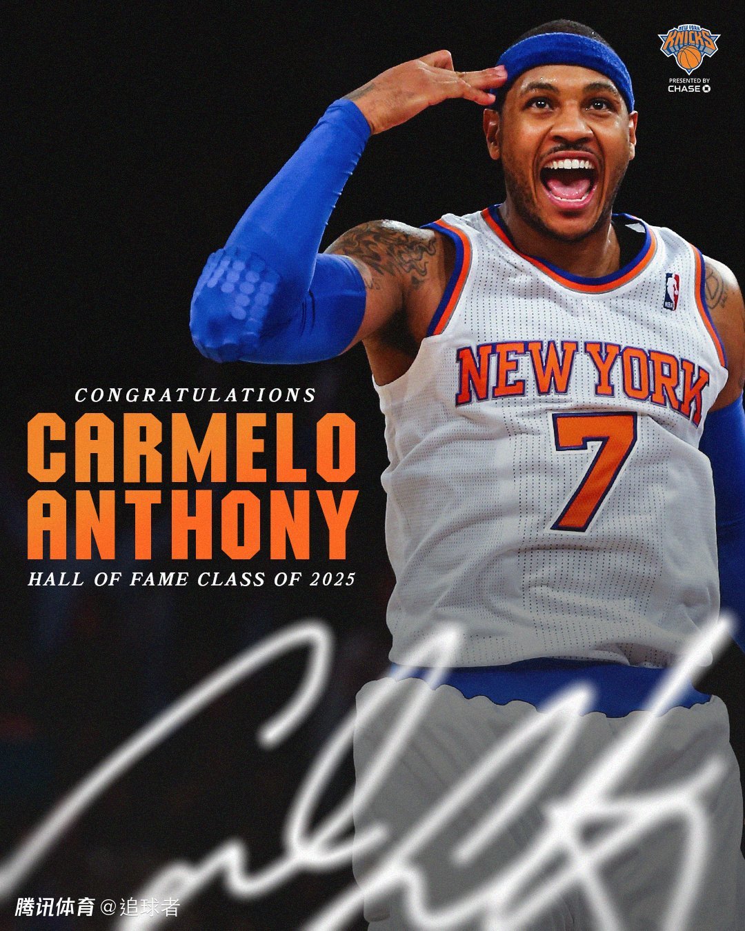 湖人、掘金、尼克斯等队官方祝贺安东尼进入名人堂,掘金官方写道:篮球界的传奇人物,如今荣登奈史密斯名人堂,恭喜甜瓜。