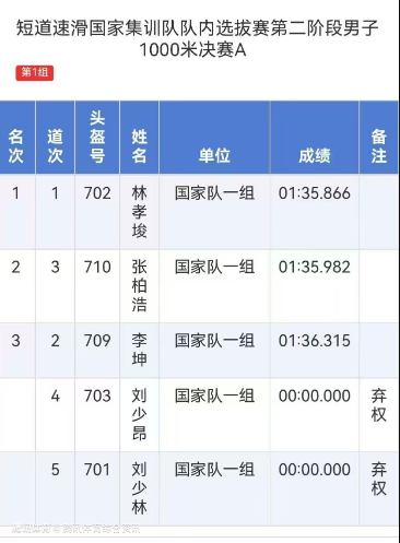 林孝埈获队内选拔赛1000米冠军 半决赛成绩超越北京冬奥会纪录