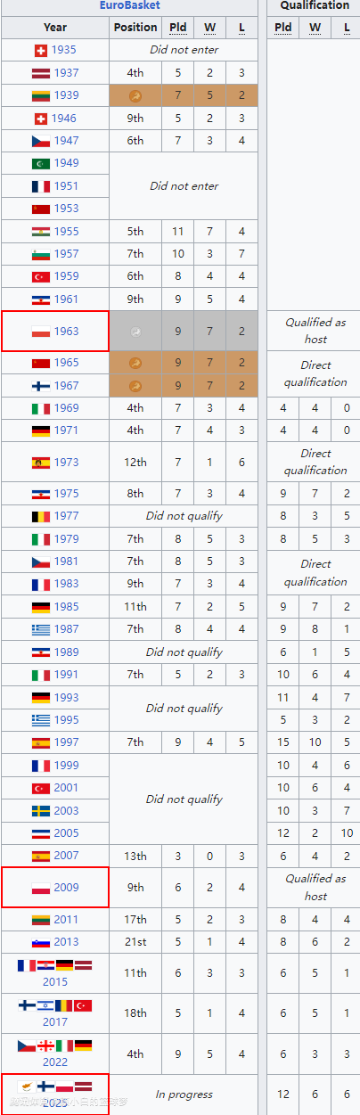 波兰在上一届欧洲杯是进入到四强之内,而且波兰男篮是欧洲杯八强常客还拿下过1银3铜。