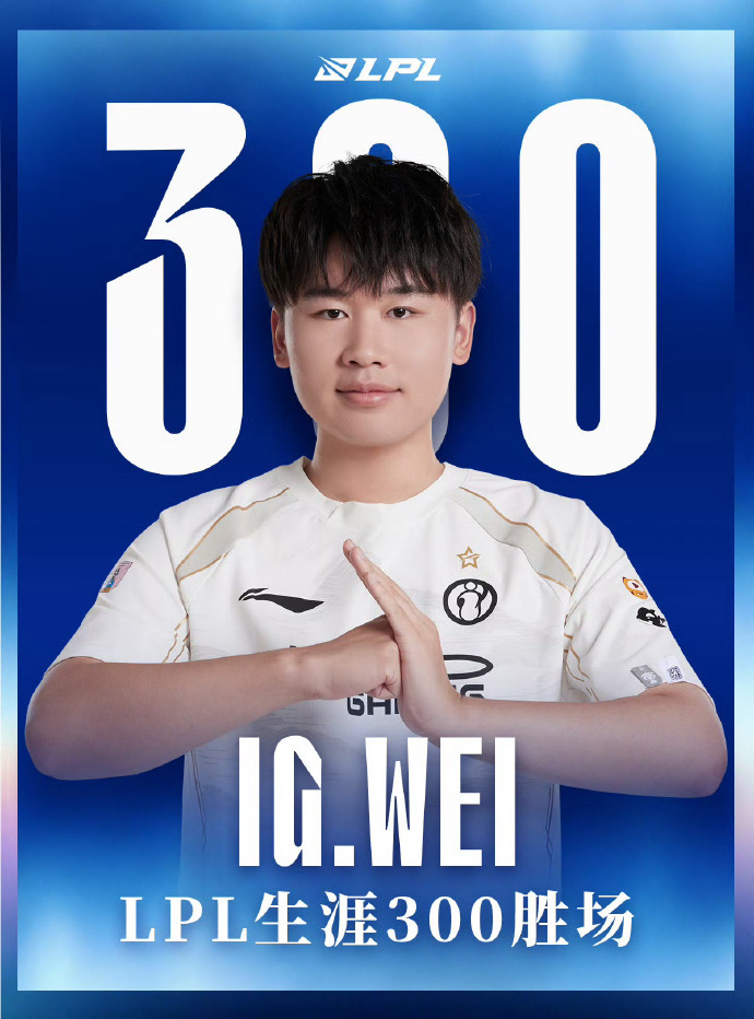 对于 Wei 来说,300 胜是对过去努力的肯定,更是未来继续前行的动力。期待在后续的比赛中,他能保持良好的竞技状态,与 IG 战队的队友们并肩作战,向着更多的胜利发起冲击,在 LPL 的舞台上书写更多属于自己和团队的传奇篇章。