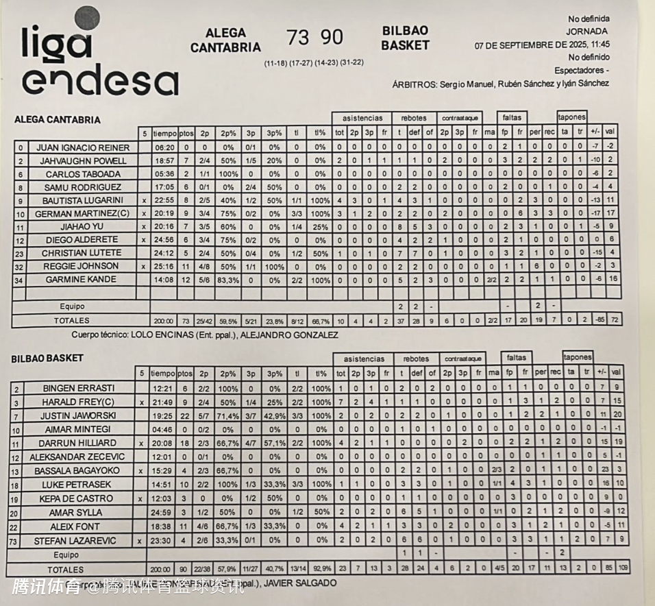 2025-09-07 20:50北京时间9月7日,余嘉豪完成西班牙联赛首秀,他所在的Alega Cantabria队以73-90不敌西甲毕尔巴鄂。