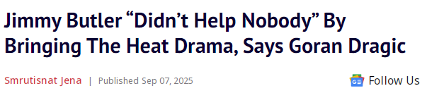 德拉季奇 :巴特勒曾让热火陷入一团糟 他离队后球队能更专注