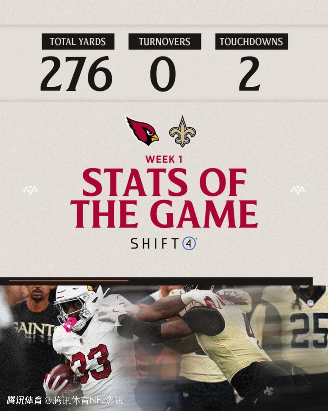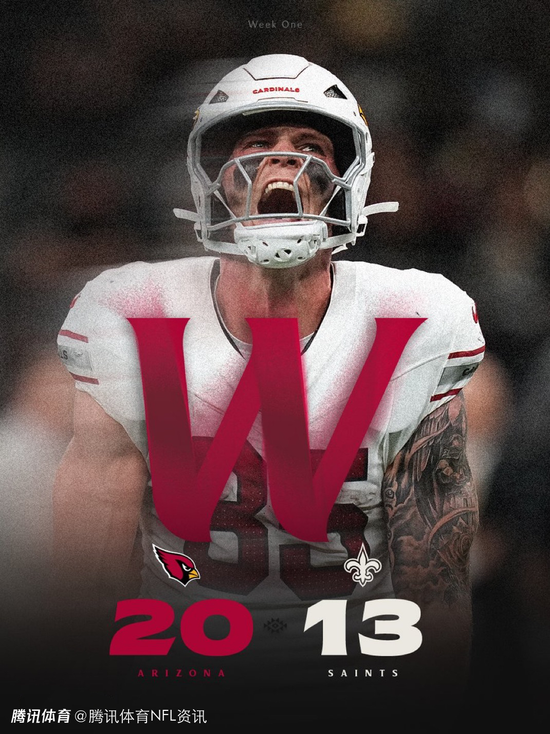 【NFL战报】红雀20-13险胜圣徒 终结对手开赛首周连胜纪录