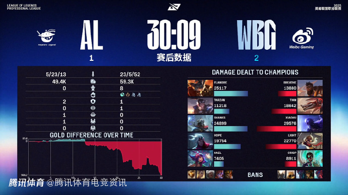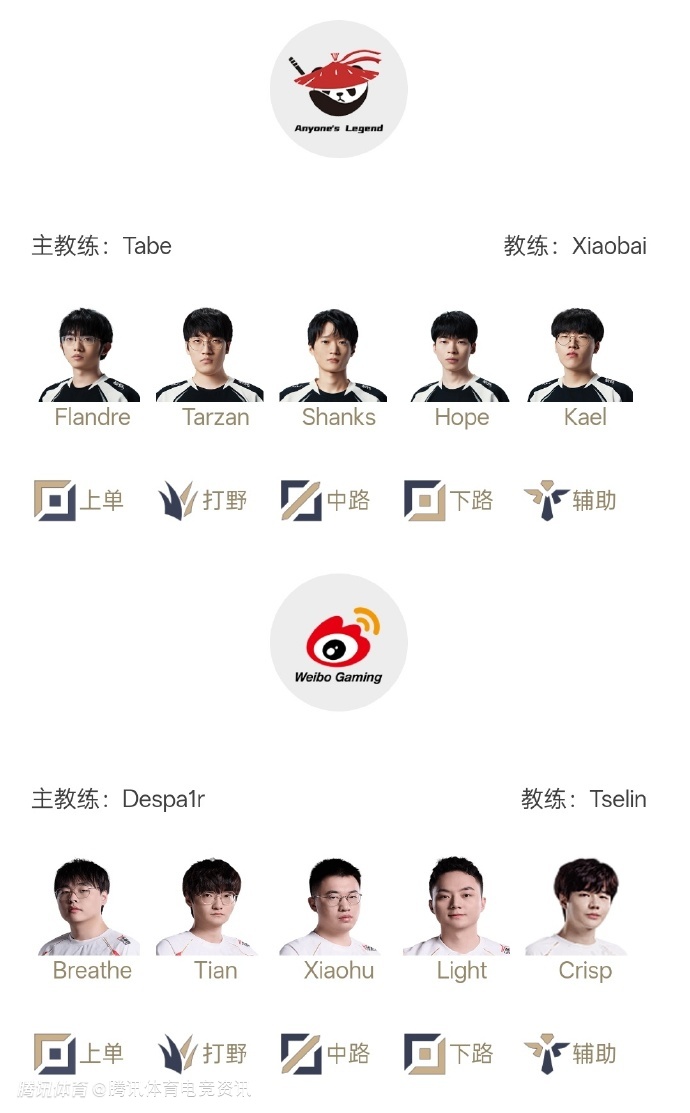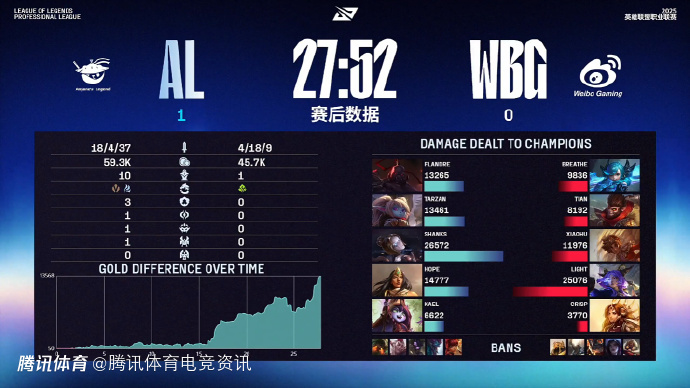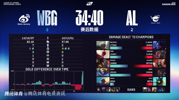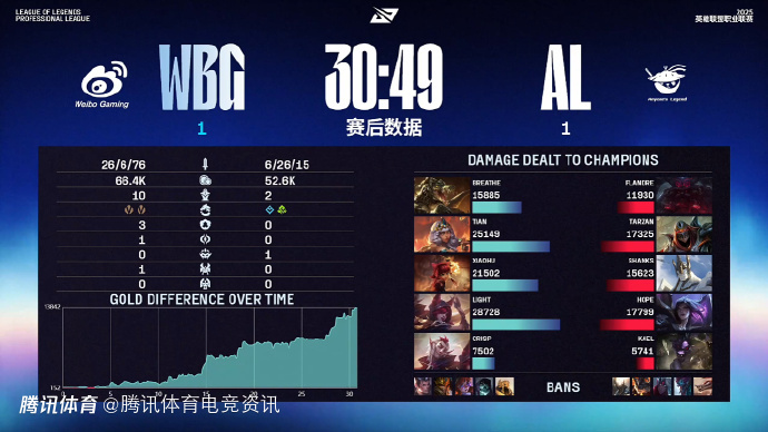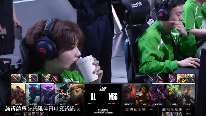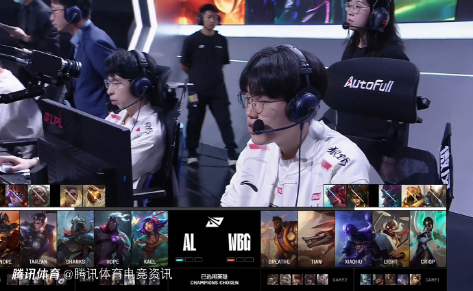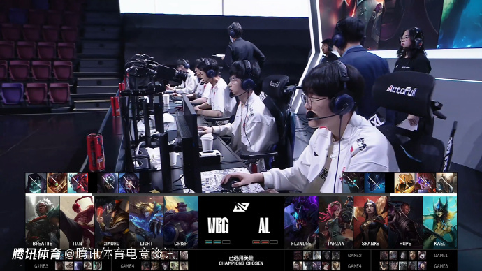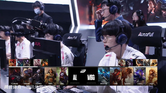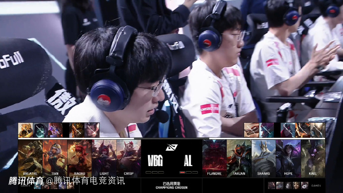 双方首发阵容为:AL(Flandre、Tarzan、Shanks、Hope、Kael)WBG(Breathe、Tian、Xiaohu、Light、Crisp)