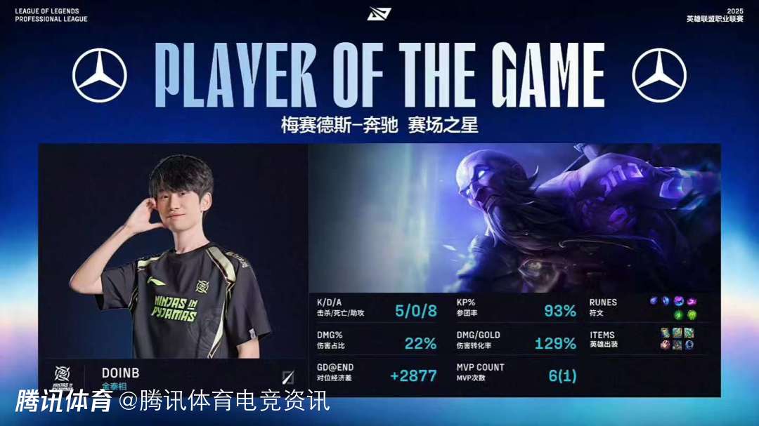 2025-09-08 23:109月8日,LPL季后赛第二日第二场比赛,TES 3:1 NIP拿下比赛胜利,成功晋级下一轮。