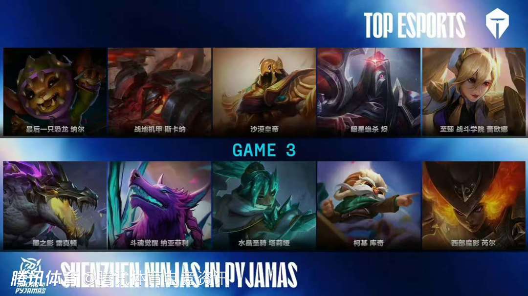 第三局阵容及BP情况:蓝色方TES、红色方NIP