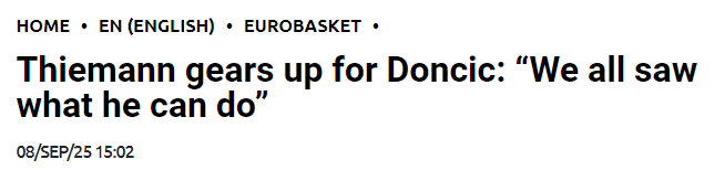在16强赛中,东契奇狂砍 42 分,带领斯洛文尼亚击败意大利。“显然,你无法完全防住他,只能尽可能限制,” 蒂曼解释道,“我们都见识过他的能力,他确实是顶尖球员。但就像我之前说的,篮球是团队运动,我们必须依靠团队的最大努力,稍微限制住他,进而赢得比赛。”