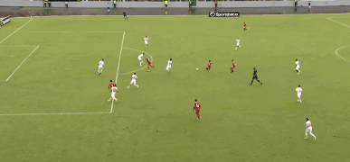 第19分钟,赤道几内亚任意球送到门前,埃内姆后点拿球摆脱防守后小角度撩射,皮球擦柱而出。