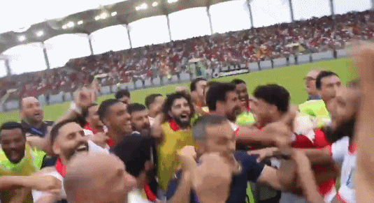 此役之前,突尼斯7场19分高居榜首,纳米比亚7场12分排在第2,对突尼斯来说,只要战胜赤道几内亚,他们就能甩开第2名的纳米比亚10分,提前锁定世界杯资格。第94分钟,让突尼斯全队、球迷狂欢的时刻到来: