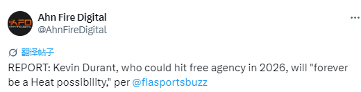 队记:杜兰特2026年有望成为自由球员 他永远是热火潜在引援目标